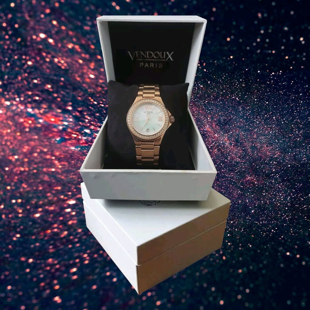 Rose goudkleurige dames horloge met een parlemoer wijzerplaat is een lust voor het oog. De met rondom afgezette lunette maakt het zeer elegant.